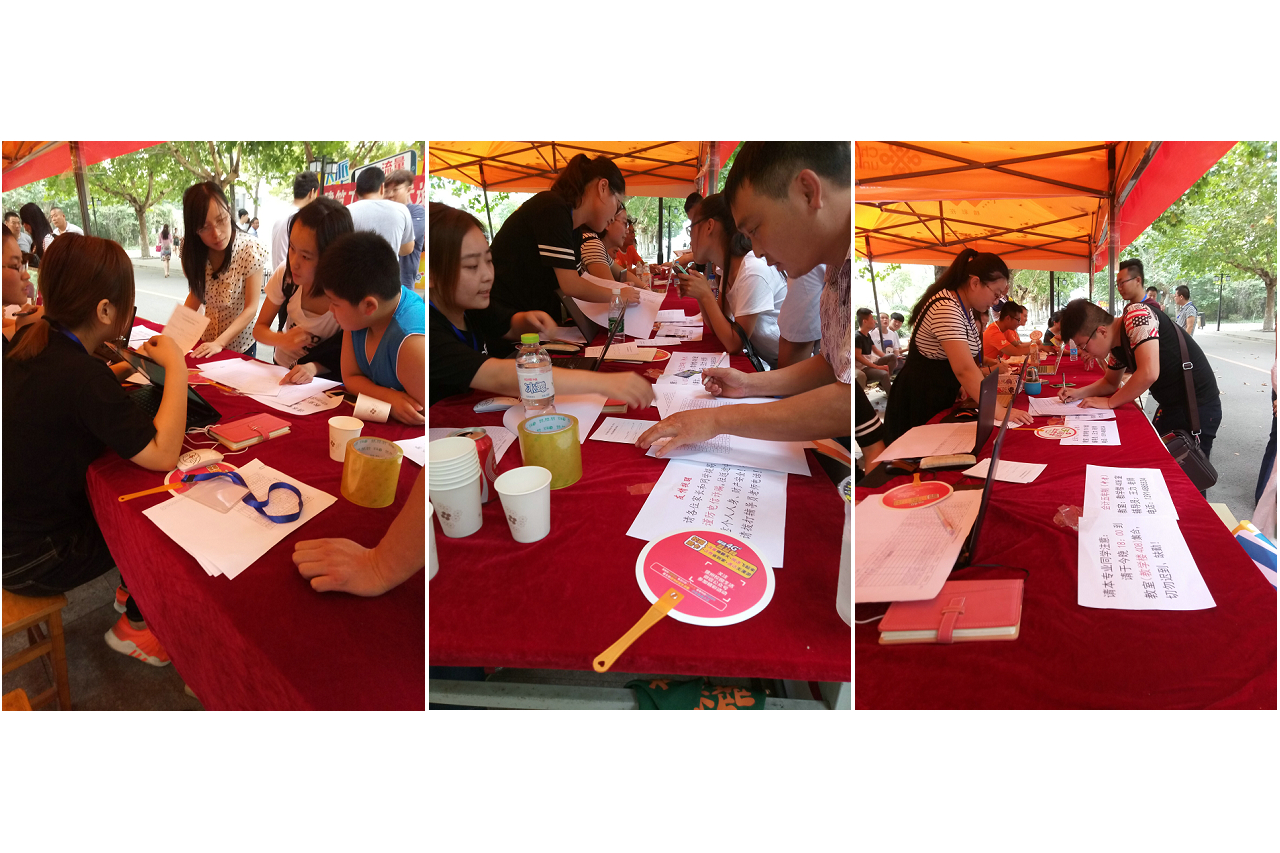 学院迎新老师更是亲临服务台,协调新生接待工作,并与家长亲切交谈,询问新生家庭情况,勉励新生入学后好好学习,用优良的成绩回报家长和社会。