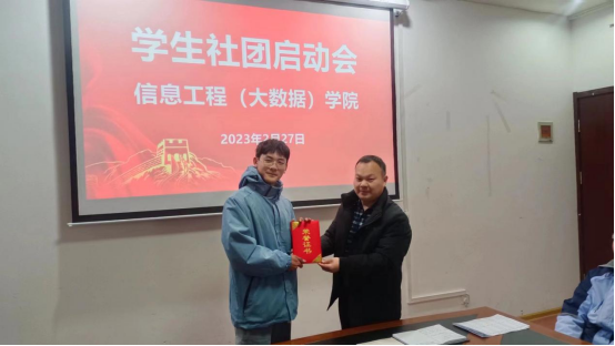 2023年2月27日下午,信息工程(大数据)学院召开学生社团启动会。学院丁院长为各社团负责人颁发了聘书,马院长在会议上强调了社团活动重要意义,并进行社团工作培训。会议鼓励学生创新、自主设计,在兴趣培养上下功夫,在能力提升上谱写新篇章,努力让社团成为同学们绽放光彩的舞台。