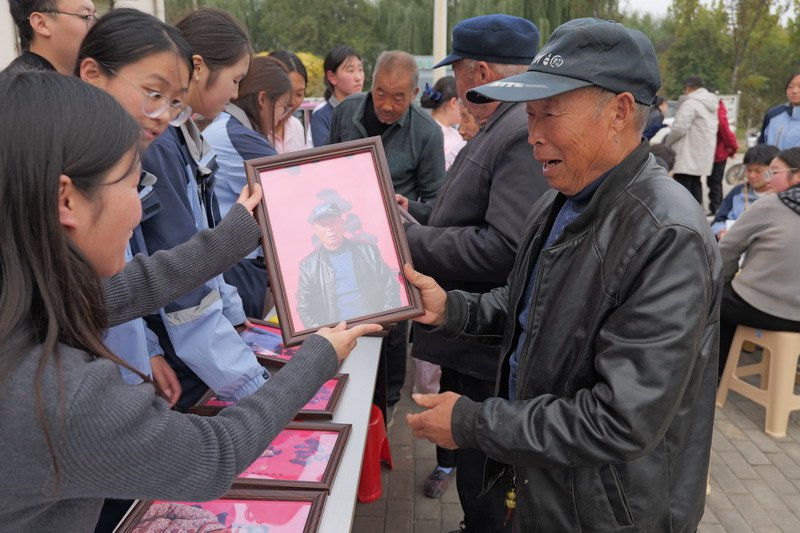 活动当日,由我校青年志愿者组成的公益摄影团队为乡村空巢老人拍摄最美照片,志愿者们耐心地为老人们整理衣装、调整姿态,用镜头细致捕捉每一位老人脸上慈祥的笑容。随着快门声响起,一幕幕温馨瞬间被永恒定格。活动不仅现场冲洗照片赠予老人,还计划制作“情暖瞬间”线上影展,让这份跨越地域的关怀得以持续传递。