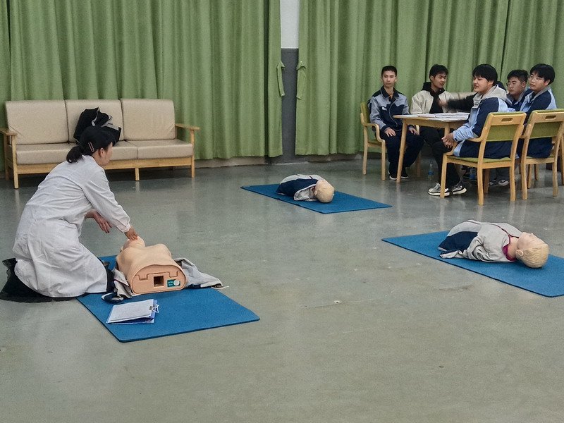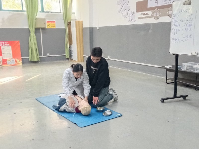 课程内容主要分为理论学习和实操演练两大板块,在理论学习中,学生们可以系统学习急救基础知识,包括常见突发状况的判断、急救原则以及不同情况下的应对策略等。而在实操演练环节,学生们在专业教师的耐心指导下,能够独立完成心肺复苏(CPR)操作,正确使用自动体外除颤器(AED),并具备止血包扎、骨折固定、气道异物梗阻处理等现场急救实操能力。在整个学习过程中,学生们展现出了极高的热情和积极性,课堂上踊跃参与互动讨论,实际操作中全神贯注,形成了浓郁的学习氛围。