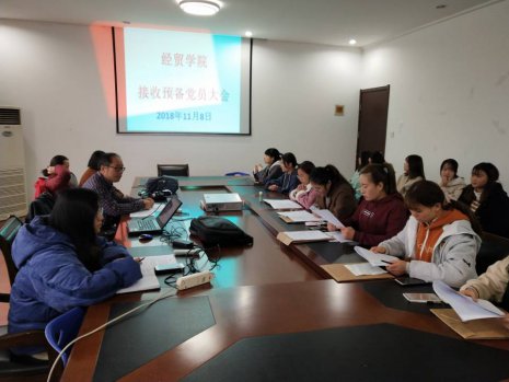 2018 年 11 月 8 日下午,经贸学院党支部在多媒体 212 室隆重召开预备党员接收大会,该会由经贸学院党支部书记许正义同志主持,参加人员支部全体党员同志、 5 名发展对象、 13 名入党...